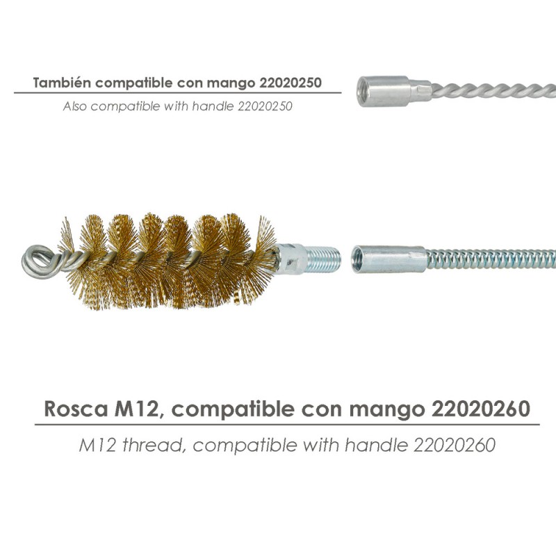 - Equipado con rosca M12, este cepillo es totalmente compatible con varillas y extensiones que presenten esa medida estándar.