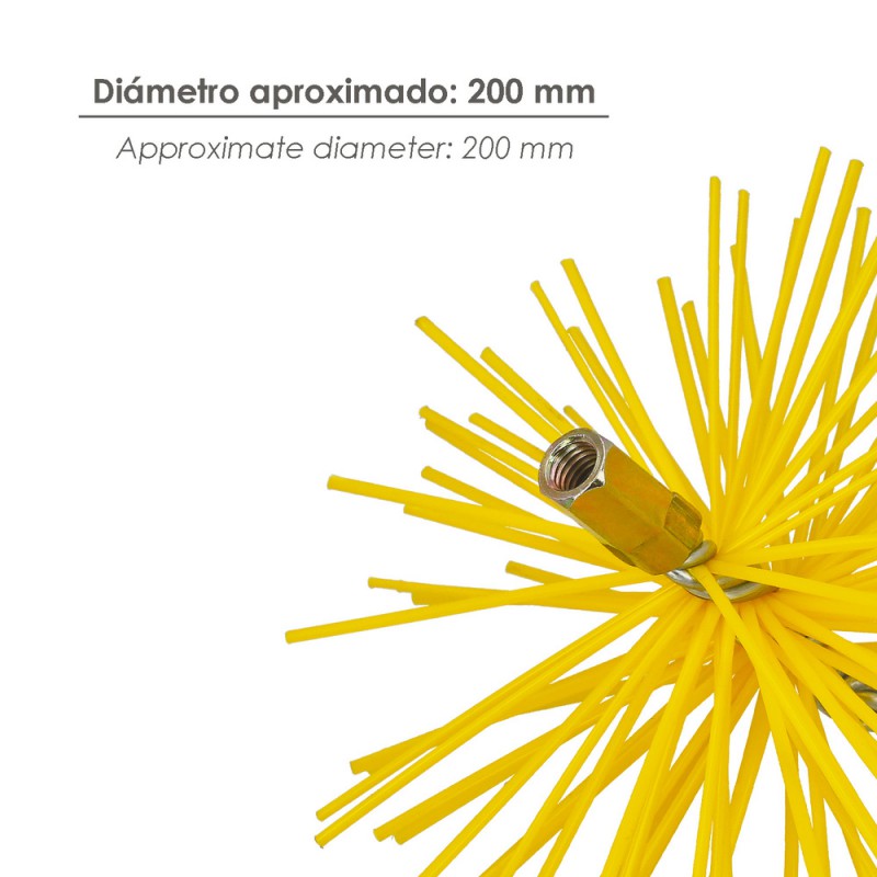 - Con un diámetro de aproximadamente 200 mm, este cepillo es compatible con una amplia variedad de kits de cepillos deshollinadores diseñados para estufas y chimeneas.